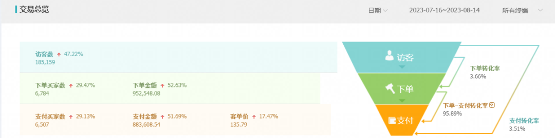 在火蝠運(yùn)營專員瑾栩(花名)的幫助下,利用多渠道增加曝光,引流至平臺私域達(dá)成閉環(huán)鏈路,店鋪各項數(shù)據(jù)實(shí)現(xiàn)全方位增長,僅一個月銷量就突破65W+,同時訪客數(shù)增長47.22%。