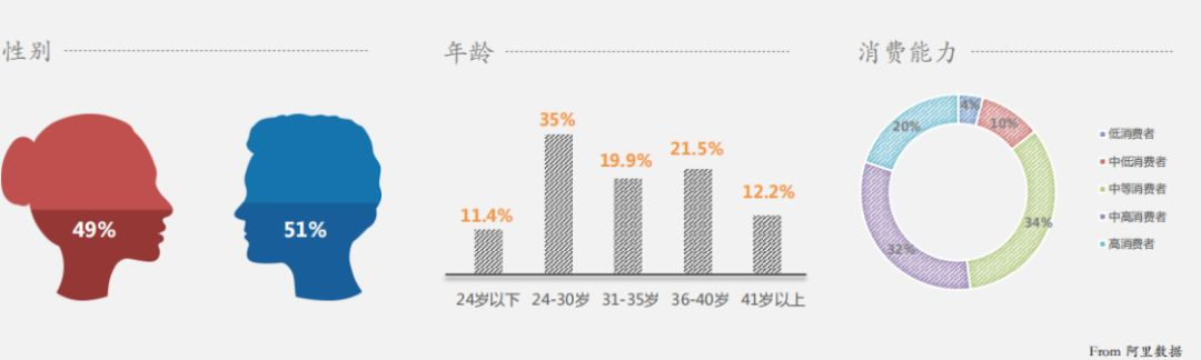 從阿里數(shù)據(jù)的分析內(nèi)容可看出,如圖1所示,在中國旅游客群中,男性以51%的占比,略高于女性。以24-40歲的年輕人群為主,占比高達(dá)76.4%,且85.7%的客群具有中高級消費(fèi)能力。