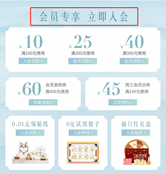 除此之外,瑾栩也加強(qiáng)了視覺觸點(diǎn),引導(dǎo)消費(fèi)者入會加深流量價值。強(qiáng)化品牌IP特點(diǎn),利用和競品與眾不同的風(fēng)格,增加消費(fèi)者對品牌IP的印象。