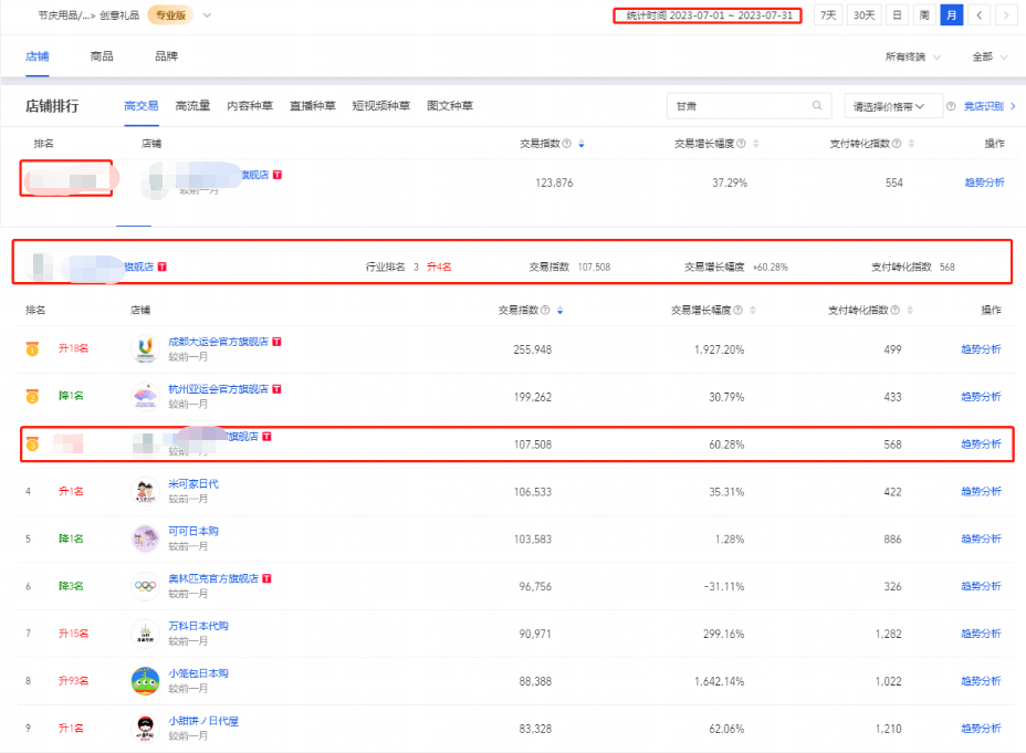 3.創(chuàng)意禮品類目新上榜行業(yè)前100名內(nèi),細(xì)分類目上榜行業(yè)第3